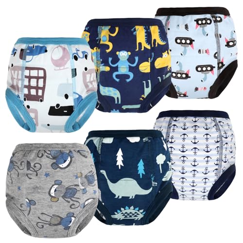 FLYISH DIRECT Potty Training Pants, Cotton Reusable Toddler Potty Training Underwear for Boys, 6 Pairs, 2 Years, Blue