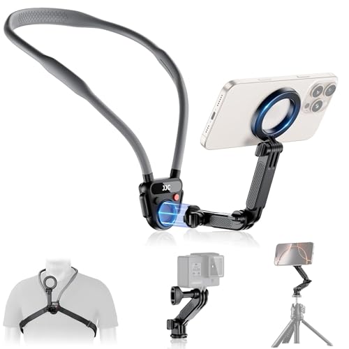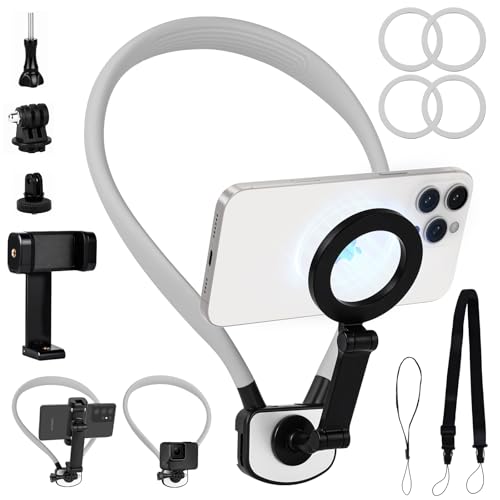 Portable Magnetic Neck Mount for Phones & Action Camera,Quick Release Neck Phone Holder with 3 Removable Arm for iphone 17 16 15 Series Android,POV/Vlog Selfie Mount Necklace Holder with Chest Strap