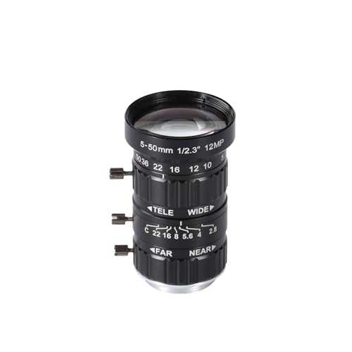 5-50mm 12MP C-Mount Low Distortion Zoom Lens, with C-CS Adapter, for Zowietek POV Camera/ZowieCAM CS Mount Model, IMX477 Raspberry Pi HQ Camera, and Industrial Telescope Lens