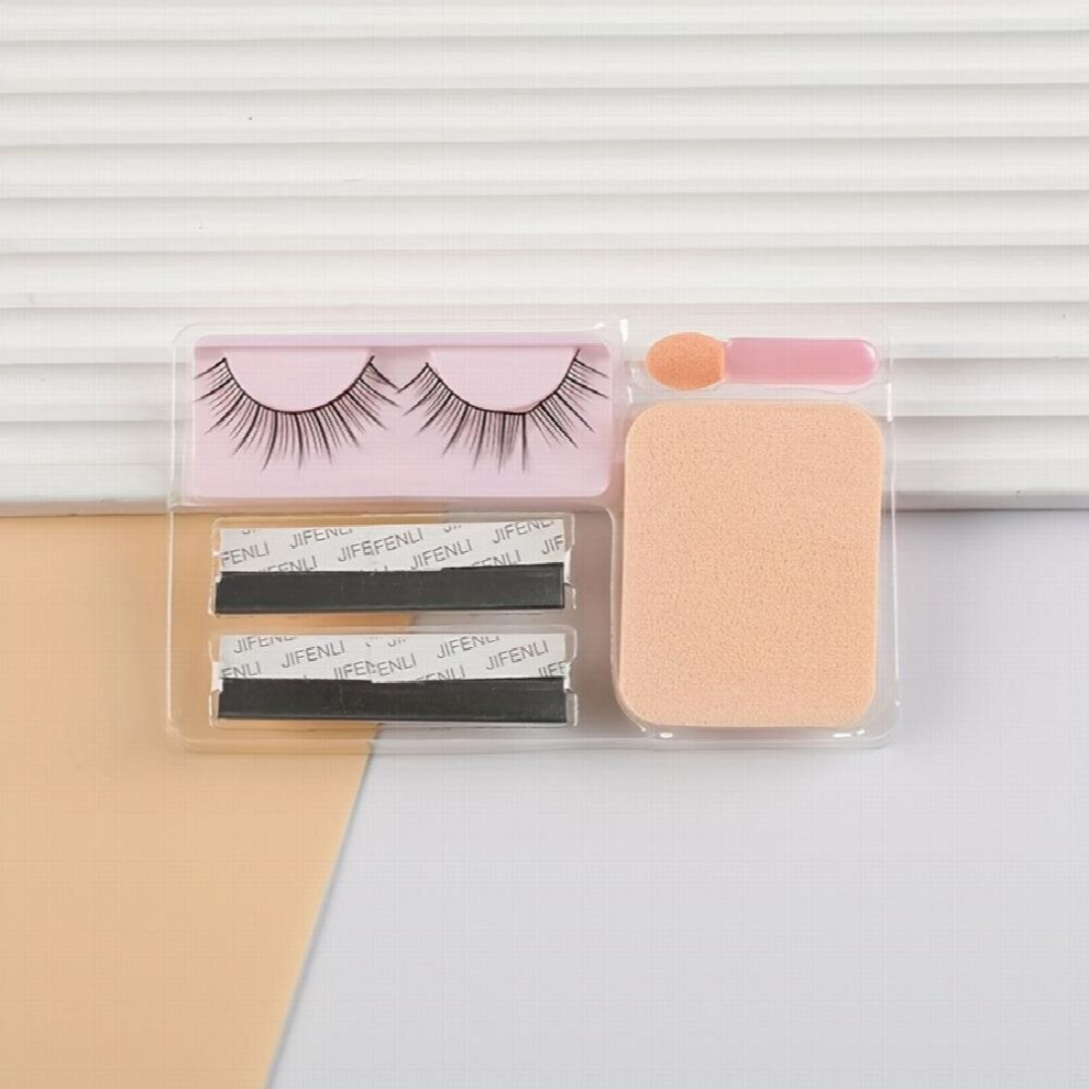 4pcs Eye Makeup Set Square Powder Puff Manga Lashes Eyebrow Trimmer Blade & Sponge Eyeshadow Brush Applicator Ideal For Travel & Daily Makeup Beauty