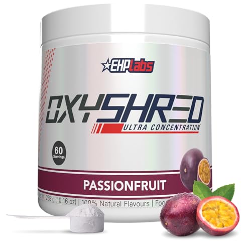 EHPlabs OxyShred Thermogenic Pre Workout Powder & Shredding Supplement - Clinically Proven Pre Workout Powder with L Glutamine & Acetyl L Carnitine, Energy Boost Drink - Passionfruit, 60 Servings