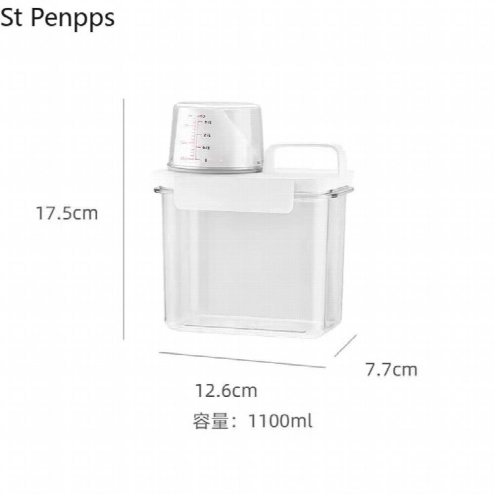 Lurrose 1100ml Plastic Laundry Powder Storage Container Box Measuring Cup Laundry Detergent Dispenser Jar for Home Room Organization