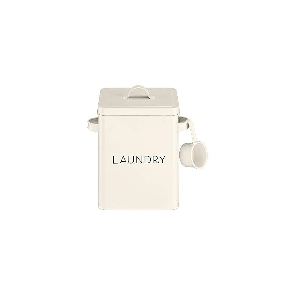 KitchenCraft Living Nostalgia 3 kg Metal Laundry Powder Tin, Kitchen/Utility Detergent Storage Box Accessory, 19 x 16 x 27 cm - Antique Cream