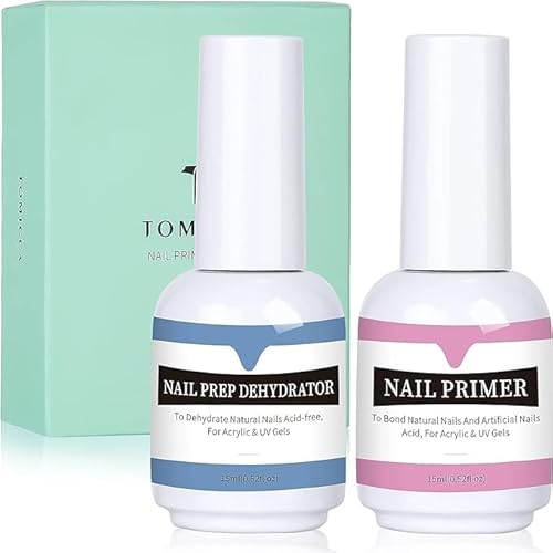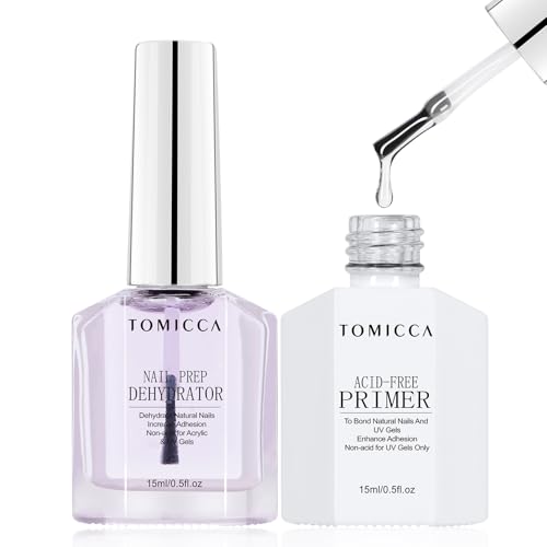 TOMICCA Nail Dehydrator and Primer Set-Professional Nail Bond Primer &Nail Prep Dehydrate,Acid Free Superior Protein Bonding,Fast Air Dry For Gel Polish and Acrylic Powder 0.5oz