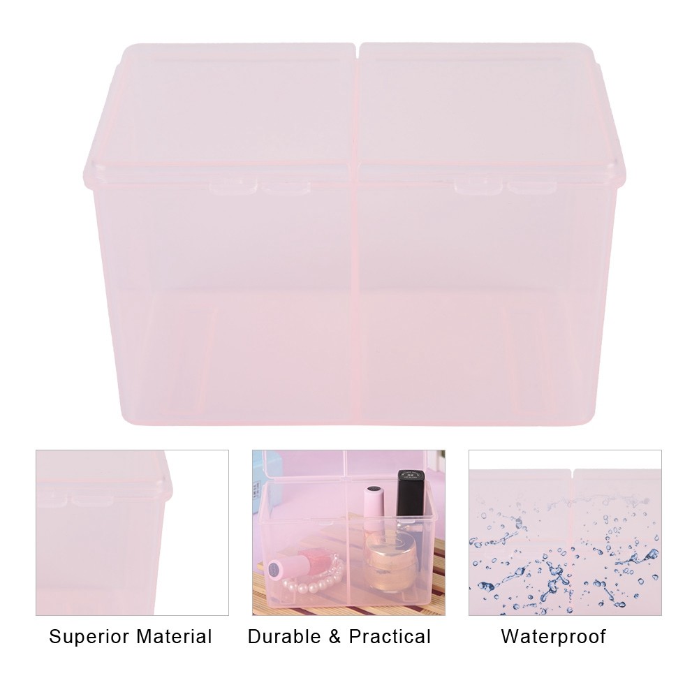 2 Grids Cotton Pads Swabs Container, Plastic Qtip Holder Dispenser, Nail Polish Glitter Powder Storage Box, Makeup Cotton Organizer Box, for Cotton Ball, Cotton Swab