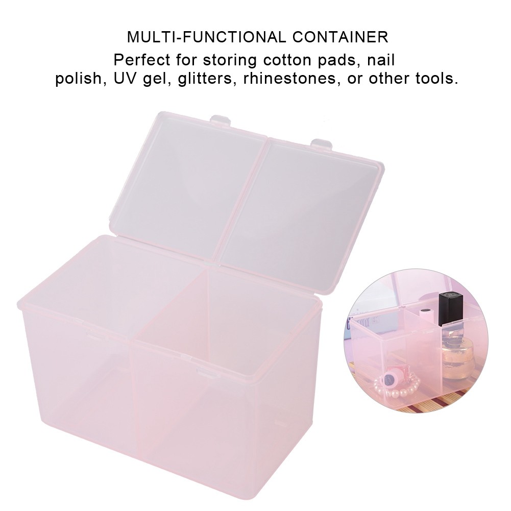 2 Grids Cotton Pads Container Nail Polish Glitter Powder Organizer Storage Box