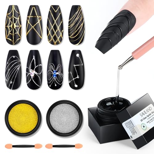 SAVILAND 3D Spider Gel for Nail Art, 5g Clear Elastic Spider Gel Polish with Metallic Silver Gold Chrome Nail Powder for Easy 3D Design Drawing Liner Beginner DIY Manicures Home Salon Use