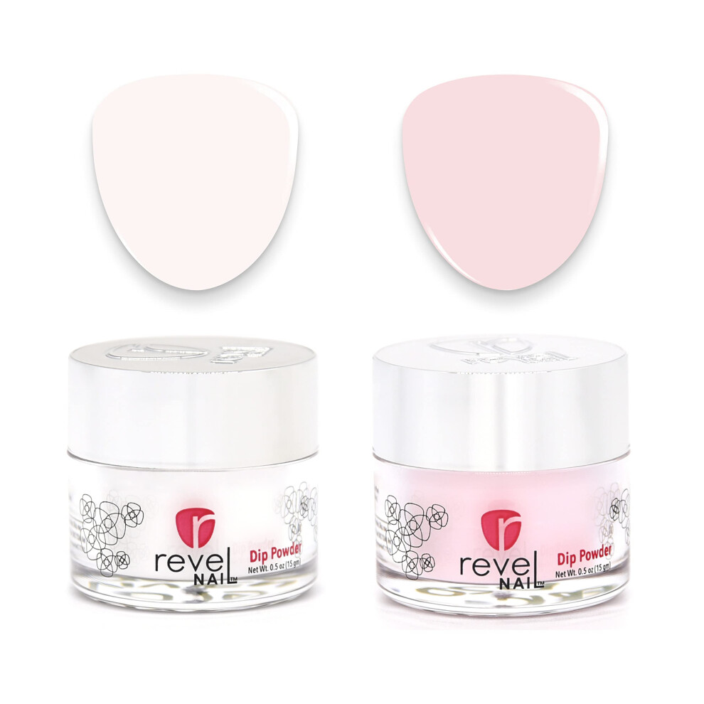 Revel Nail Dip Powder - Clear and French Powder Dip Nail Polish Chip Resistant Dip Nail Powder with Vitamin E and Calcium DIY Manicure Vivien