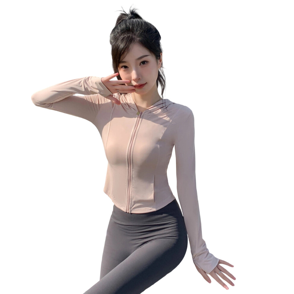 Breathable Long Sleeve Sun Protection Shirt For-Hooded powder M