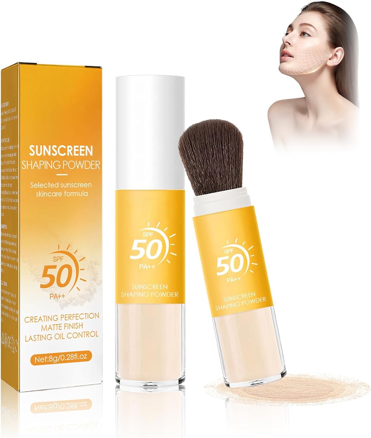 Mineral Powder Sunscreen Brush,Matte Powder,SPF 50 Powder Sunscreen for Face,Sc
