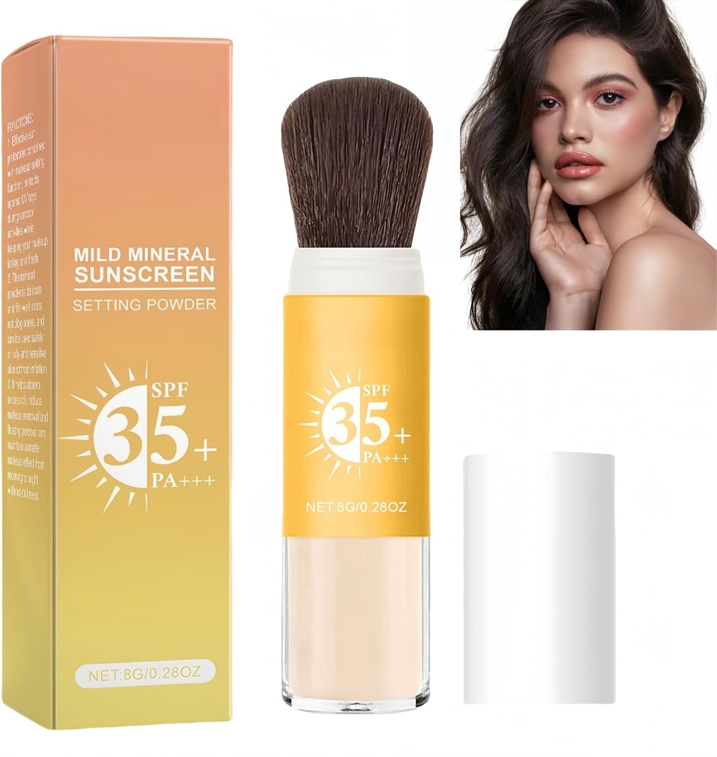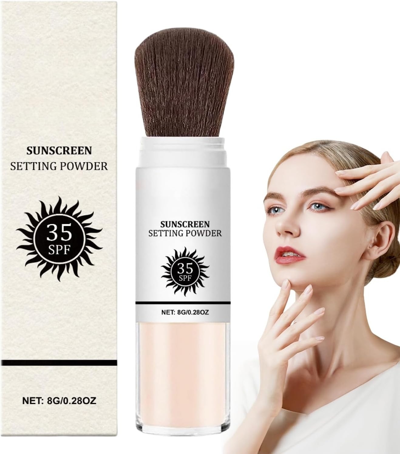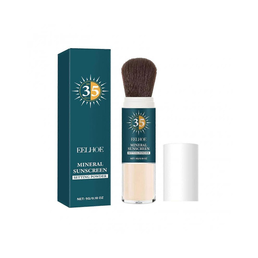 Mineral Powder Sunscreen Brush,SPF35+ Matte Face Powder,Powd-er Sunscreen for F