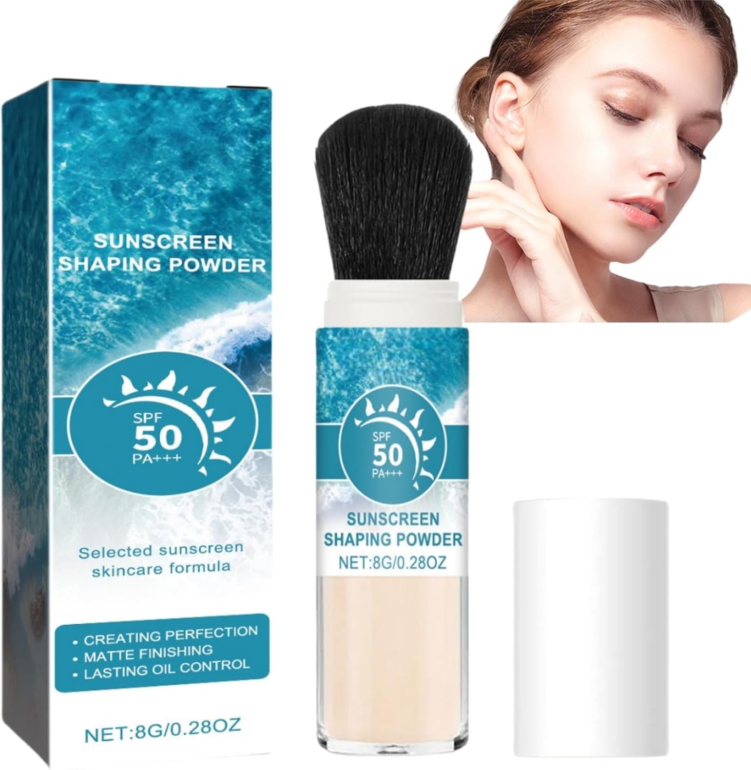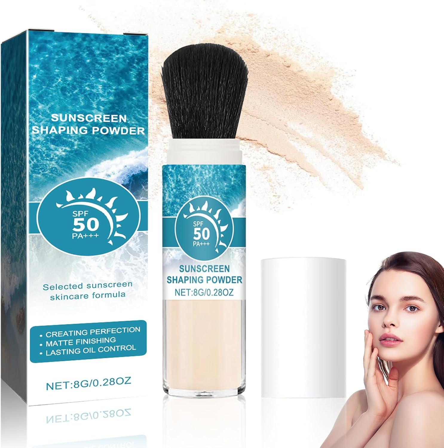 Mineral Powder Sunscreen Brush SPF50 - Natural Matte Finish, Suitable For All S