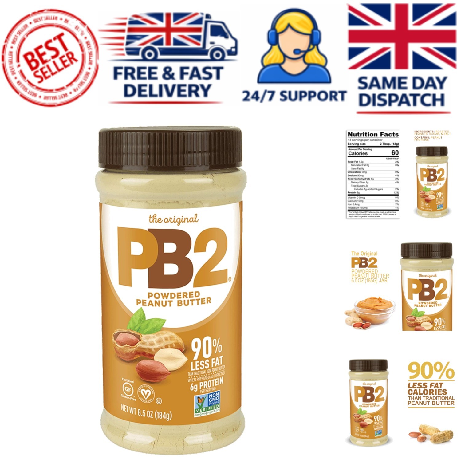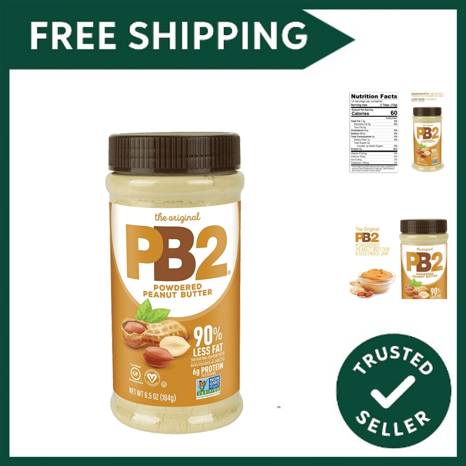 PB2 Original Powdered Peanut Butter 6g of Protein 90% Less Fat Certified Gluten