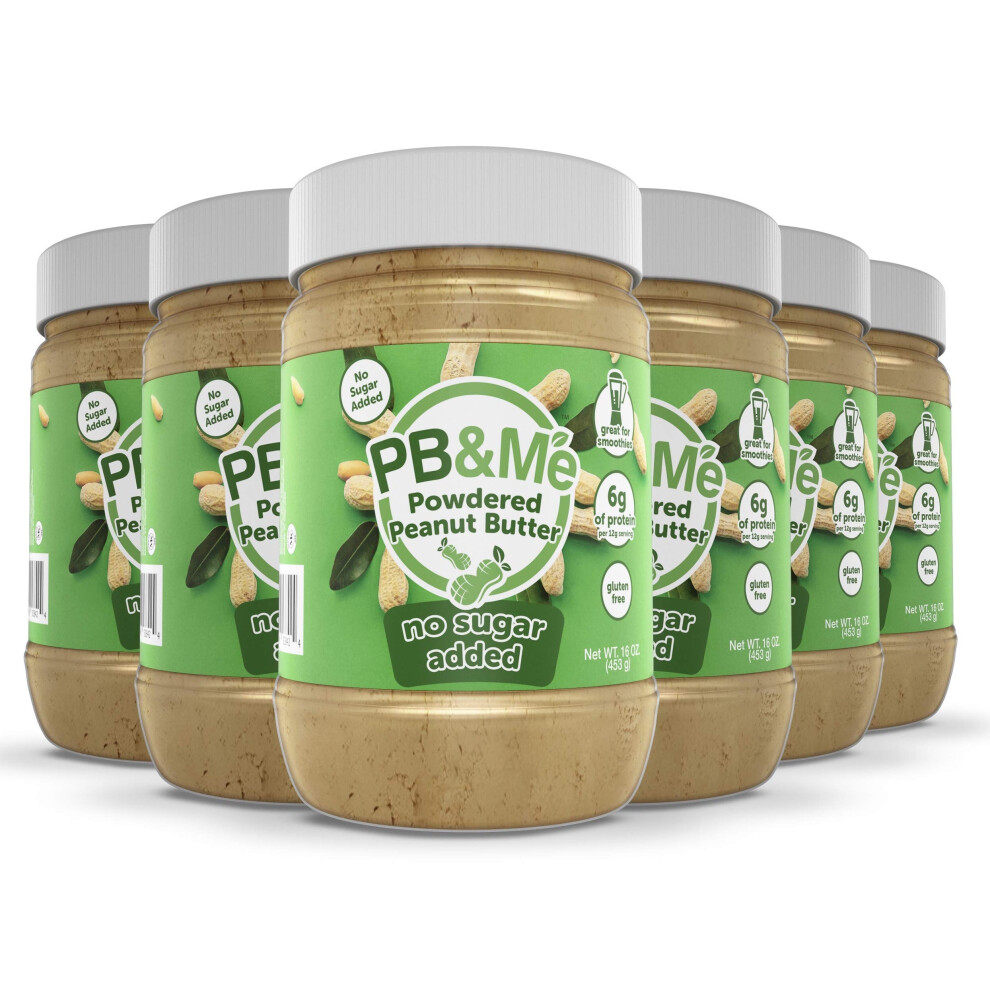PB&Me Powdered Peanut Butter, No Sugar Added, High Protein Low Calorie Peanut Powder, Great for Smoothies, 2.72 kg (Pack of 6)