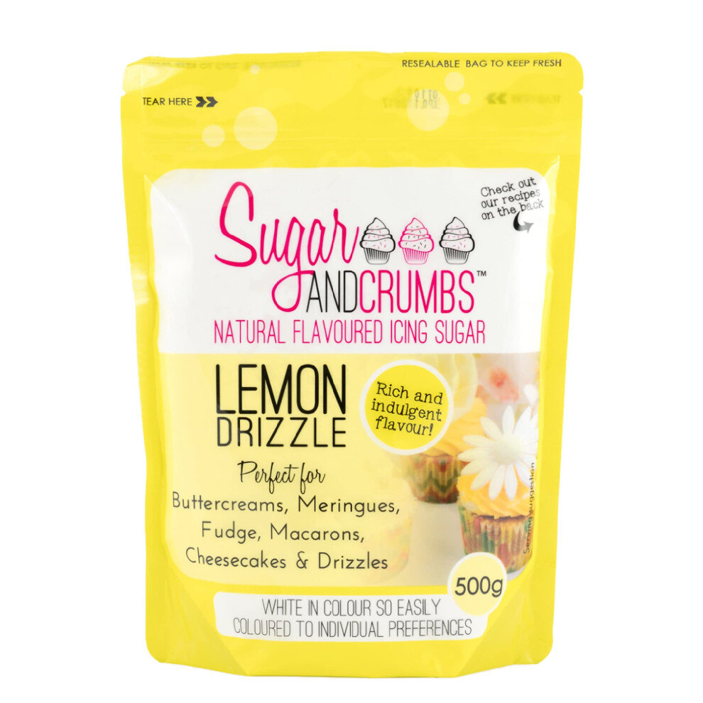 Sugar and Crumbs Lemon Drizzle Natural Flavoured Icing Sugar, Confectioners Powdered Sugar - For Baking, Frosting, Dusting, Decorating Royal Icing