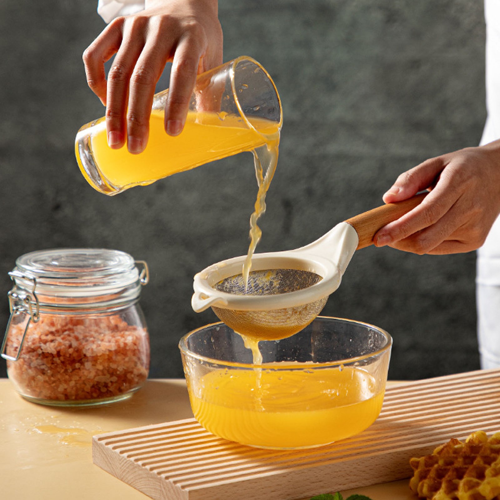 Ins Wooden Handle Baking Fine Leaking Mesh Stainless Steel Powdered Sugar Sieve