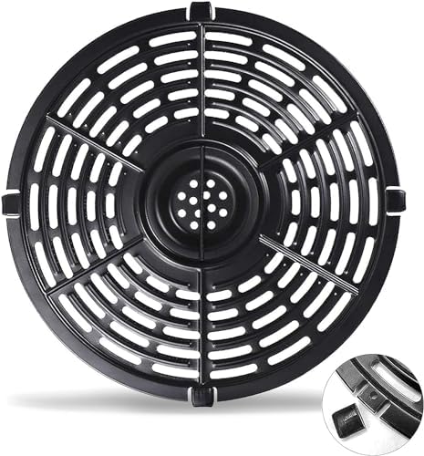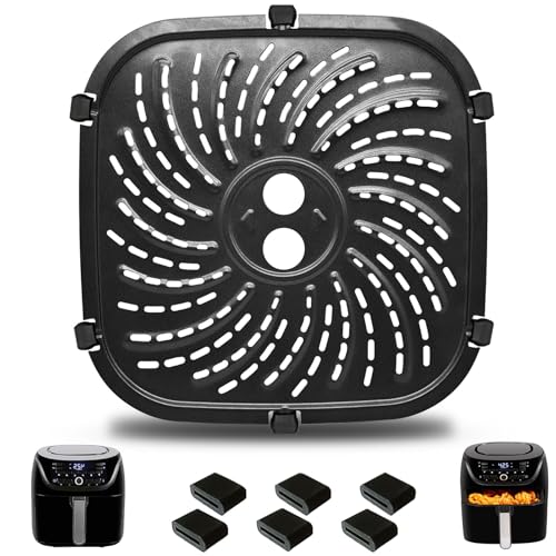 GCQ Air Fryer Replacement Parts for PowerXL 5.7L Air Fryer Cooker, Oval 8.67''*8.67''Food Grade Stainless Steel Air Fryer Accessories Grill Pan Crisper Plate Tray Rack with Rubber Bumpers