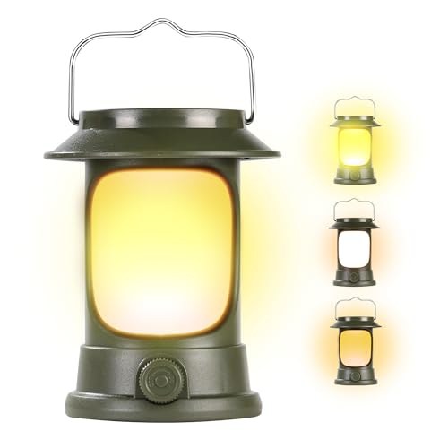 Camping Lamp LED Lantern in Retro Style, Continuously Dimmable, Warm Light Atmosphere Camping Tent Light, Emergency Power Bank, USB Rechargeable, for Camping, Garden, Power Outages
