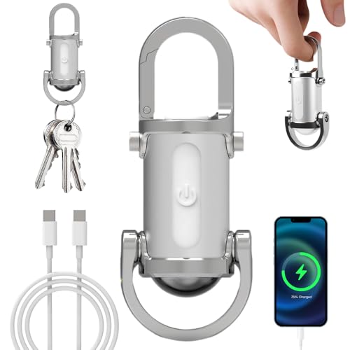1200lm Super Bright Mini Keychain Flashlight Waterproof, Ultra-Bright LED Keychain Flashlight, Portable LED Work Light Keychain Pendant with Power Bank & 8 Modes for Camping, Hiking, Emergency (White)