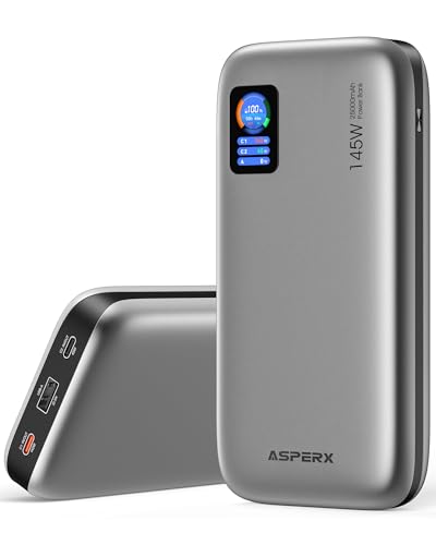 ASPERX 145W 24000mAh Laptop Power Bank Fast Charging, 100W Powerbank, Laptop Portable Charger with TFT Smart Display, PD 3.1 Battery Pack for iPhone 16/15, Galaxy S24, Dell, HP, ASUS, iPad, Travel