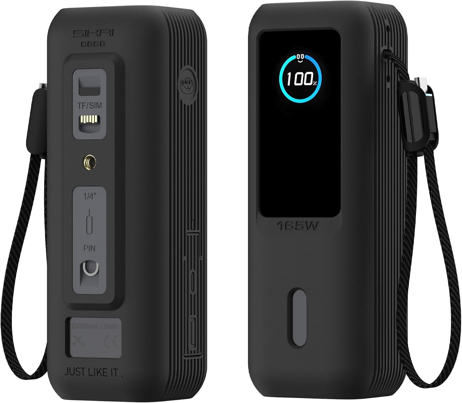 Silicone Case for Anker Laptop Power Bank 165W (25000mAh) with 1/4-inch Nut Hole, TF/Sim Card, Card Pin Storage Slot for Anker Power Bank 165W Skin-Friendly Anti-Lost Protective Case (Black)