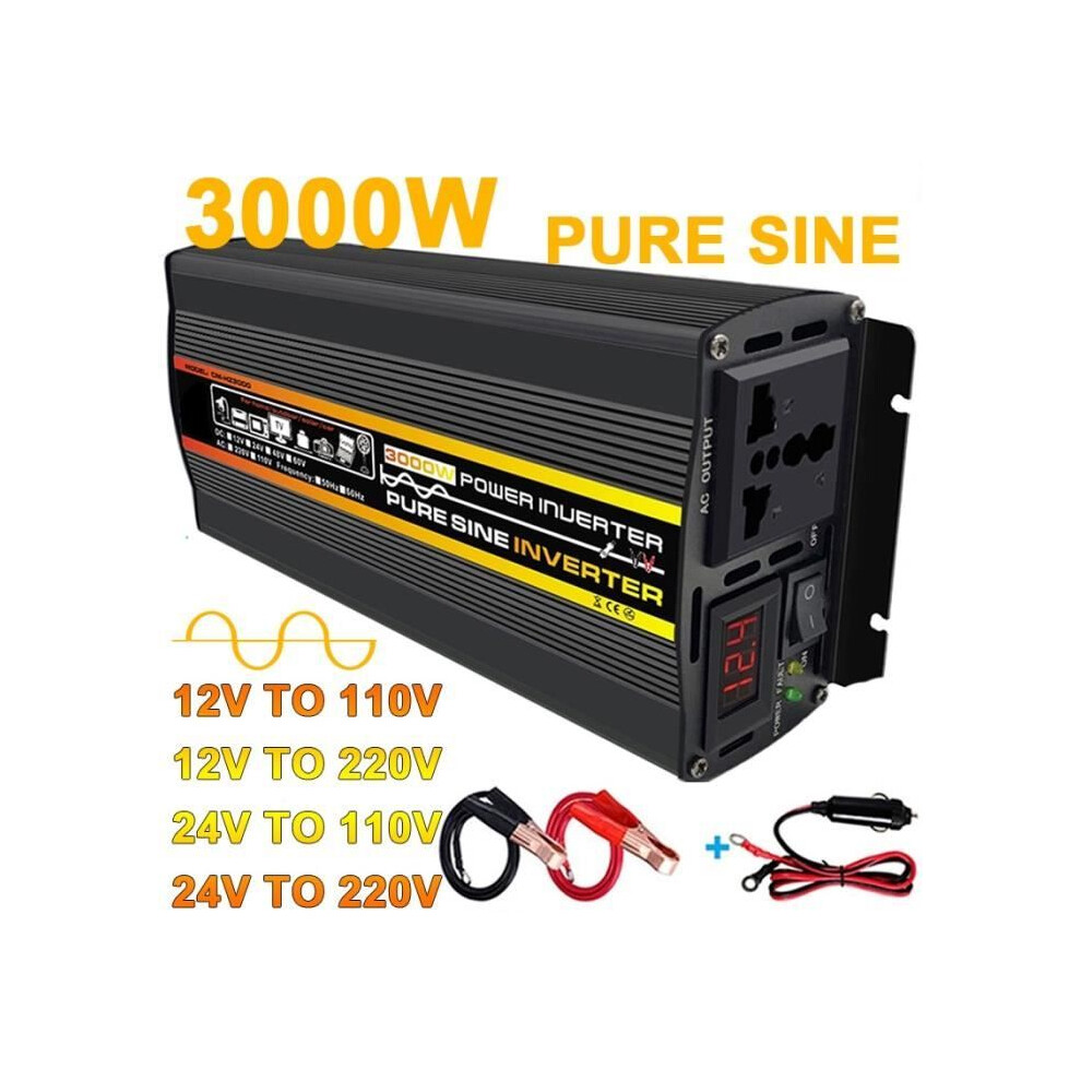 (As show, One size) 3000W Pure Sine Wave Inverter Copper Fast Heat Dissipation DC24V to AC LCD Power Inverter for Home RV Car US Plug AC110V