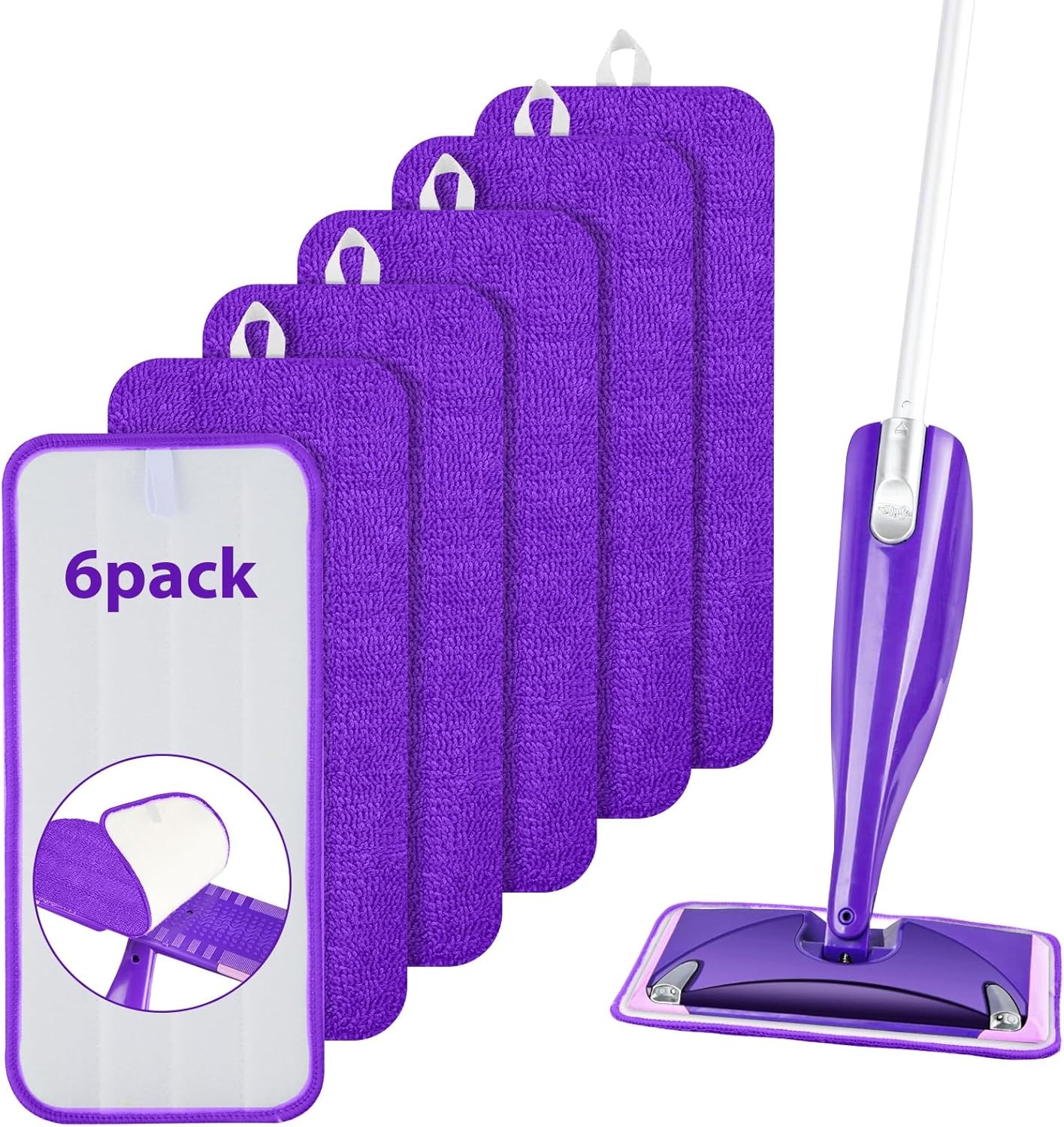 Reusable Mop Refill Pads for Flash Power Spray Mop, Microfibre Absorbing Wet Cloth Refills, Washable Powermop Pads for PowerMop & Any Type of Floor, 6 Pack