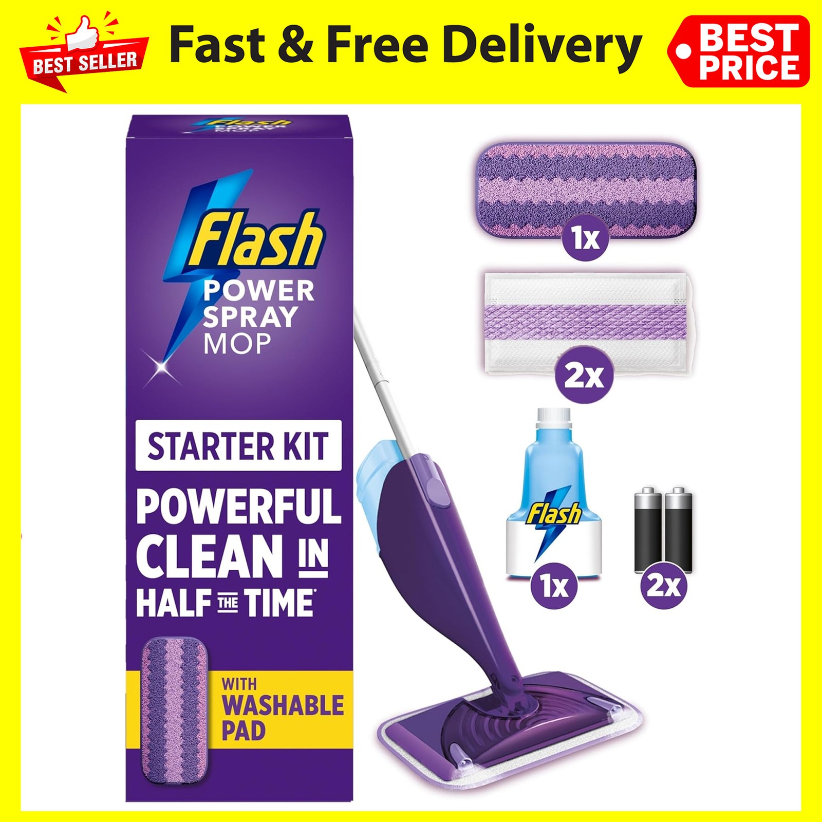 Flash Power Spray Mop Floor Cleaner Starter Kit (1 Washable + 2 Disposable Pads), All-In-One System For Your Floors