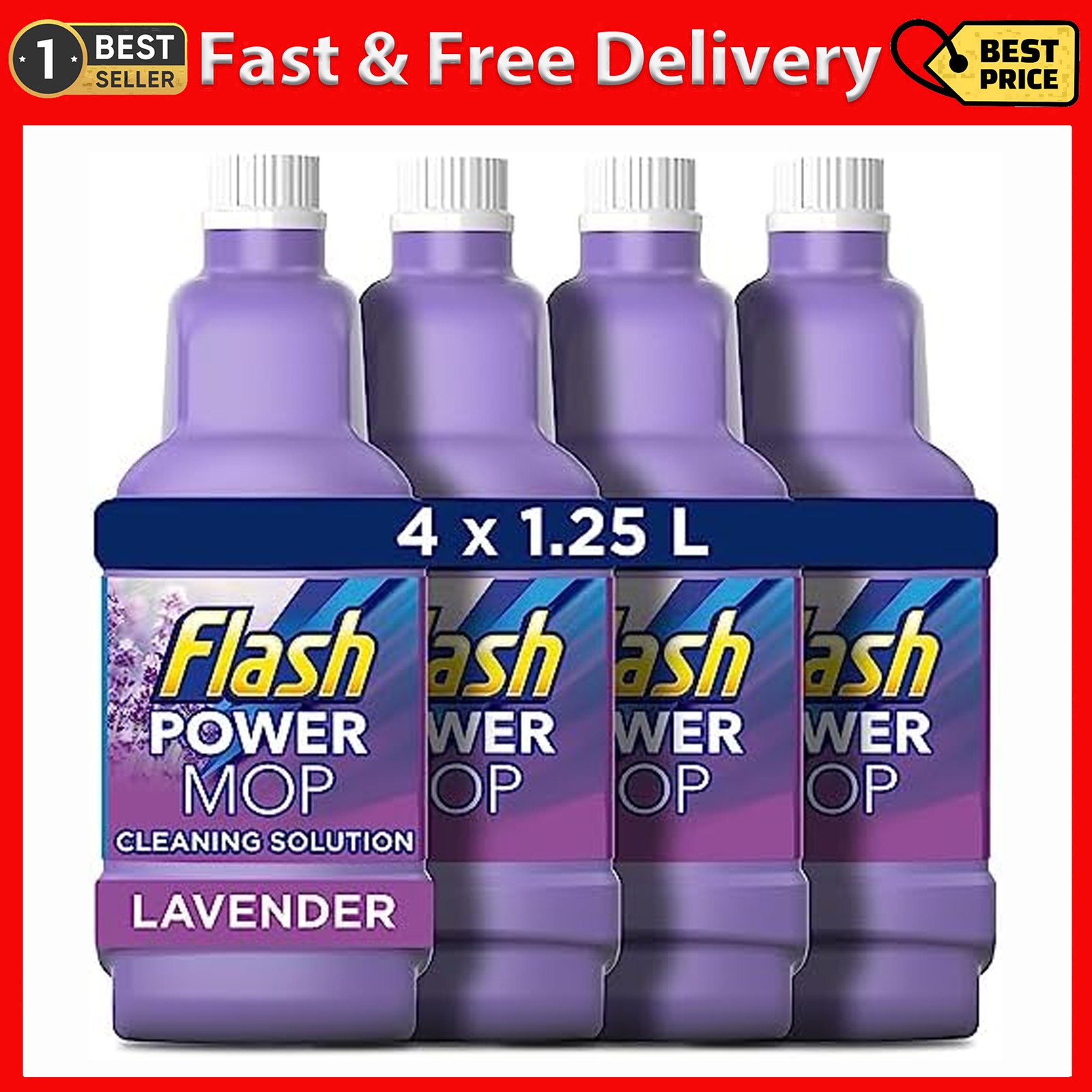Flash Power Spray Mop Floor Cleaner Multi-Surface Cleaning Liquid Lavender 5L (1.25Lx4)