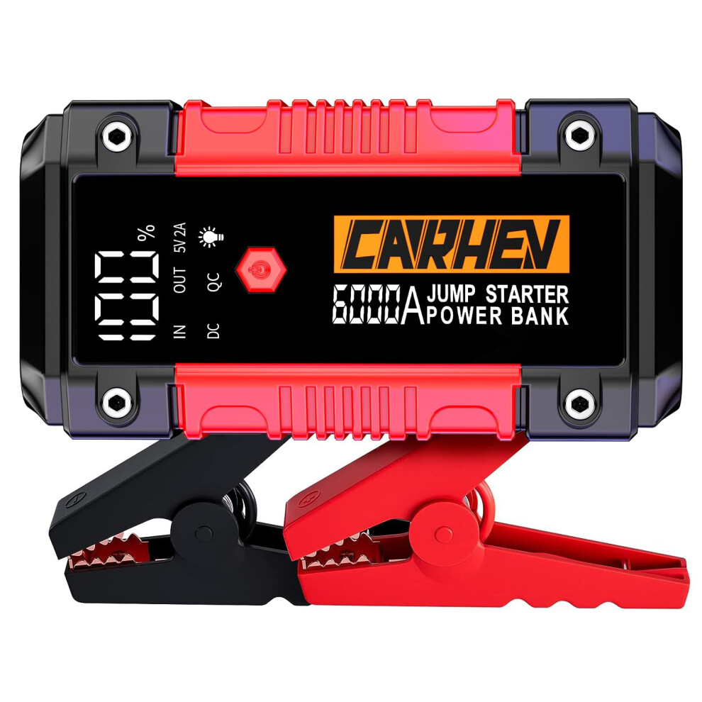 CARHEV 6000A Jump Starter Power Pack, Car Battery Booster Jump Starter (up to 10.0L Gas or 10.0L Diesel Engine), 12V Car Starter Power Bank with USB QC 3.0, Jump Pack With DC Output