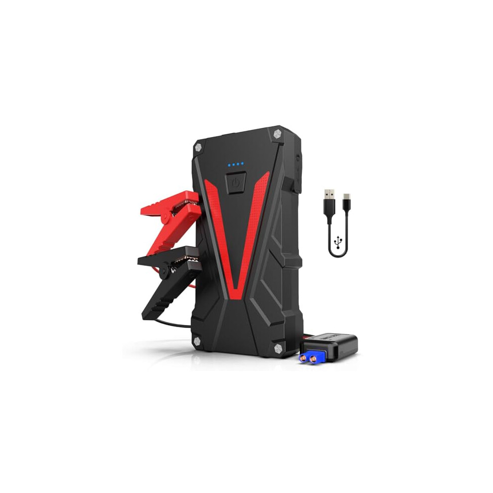 NHOWIN Jump Starter Power Pack, 4-IN-1 Car Battery Booster (Up to 8.5L Gas or 5.0L Diesel Engine) with Leads, Portable Car Jump Starter Power Bank with USB Fast-Charging Port and LED Flashlight
