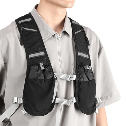 Running Vest – Nylon Fabric | Running Backpack | Reflective Vest Lightweight Hydration Pack With Storage For Mobile Phone Power Bank Wallet 500ml Water Bottle For Runnings Cycling Hiking And
