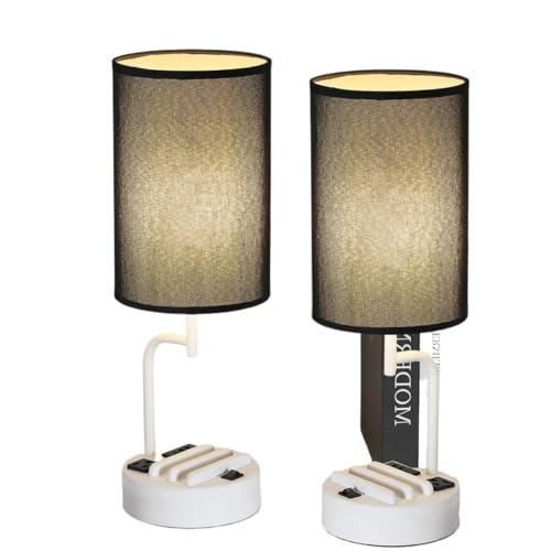 CXYWBD Style Table Lamp with Power Socket Phone Holder Bedroom, Room, Office, (2 Pack), White and Black Suitable for bedrooms, Living Rooms, Offices, Book