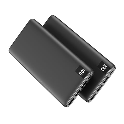 Enerwow Power Bank, 2-Pack 16000mAh Portable Charger 3A Fast Charging, Slimest Battery Pack Phone Charger with LED Display, PowerBank with 2 USB Outputs Compatible for iPhone and More