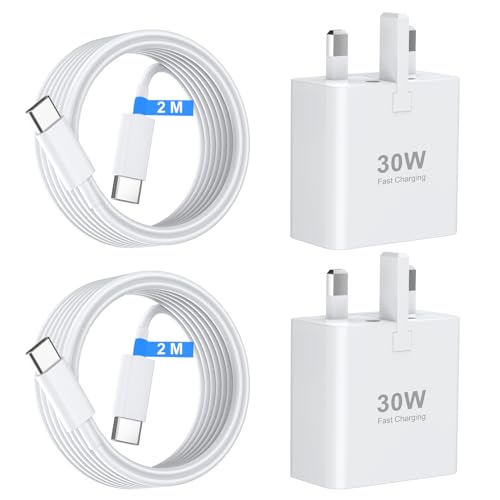 iPhone 17 16 15 Charger USB C Charger 30W Fast Charger USB C Plug and Cables, 2 Pack Type C UK Wall Super Charge Phone Power Adapter for iPhone 17 Air/17 16 15 Pro Max/iPad/Samsung S25 Ultra/S24/S23