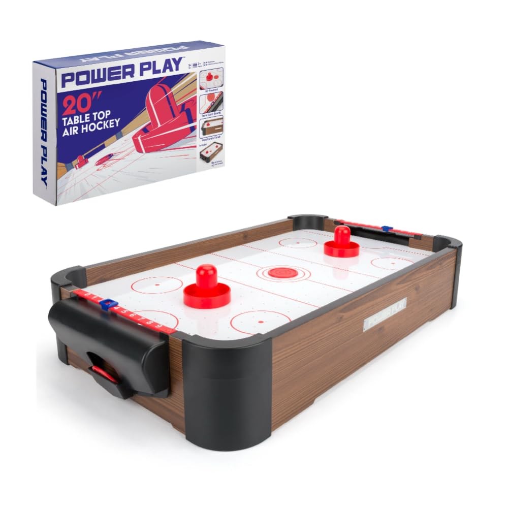 Power Play Air Hockey Table Game, Wooden Portable Table Toys Game for Kids and Adults, 16 inches, Brown
