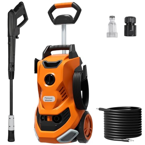ETOOLAB Pressure Washers, 160Bar 450L/H Electric Power Washers with Foam Cannon, 4 Nozzles, 15M Total Long High Pressure Washer for Cars, Fences, Patios, Decks, Patios and Driveway