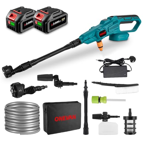 wowspeed Cordless Pressure Washer 1500W with 2 * 3Ah Batteries, 21V Handheld Pressure Washer Kit, High Pressure Washers with 2 Nozzles, 16.5ft Hose, Cordless Power Jet Wash for Car Gardening