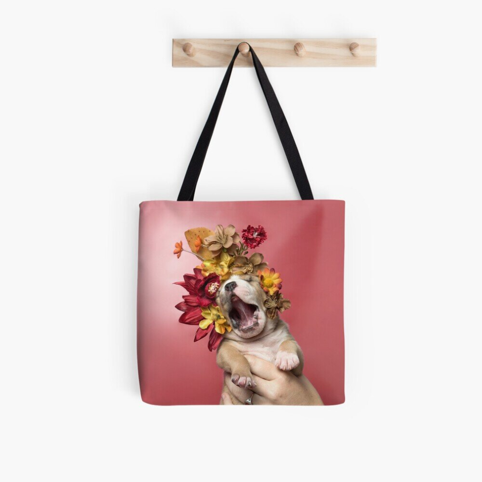 Tote Bags Flower Power, Luvable puppy Grocery for School Library Gym