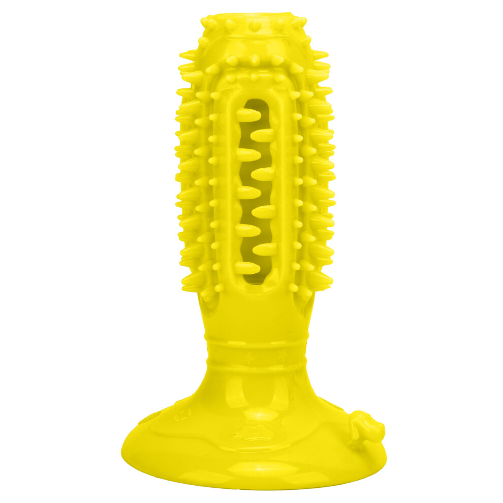 Power Chew Dog Toys For Small To Large Dogs, DuraChew Long Lasting With Suction Cup Interactive Toy, Yellow Dog Toothbrush Stick, Puppy Brushing