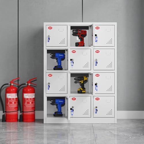 Labasuan 12 Doors Metal Lockers for Employees, Power Tool Charging Locker with Key Locks, Storage Units Employee lockers, for Power Tools, Two-Way Radios, Phones & Batteries