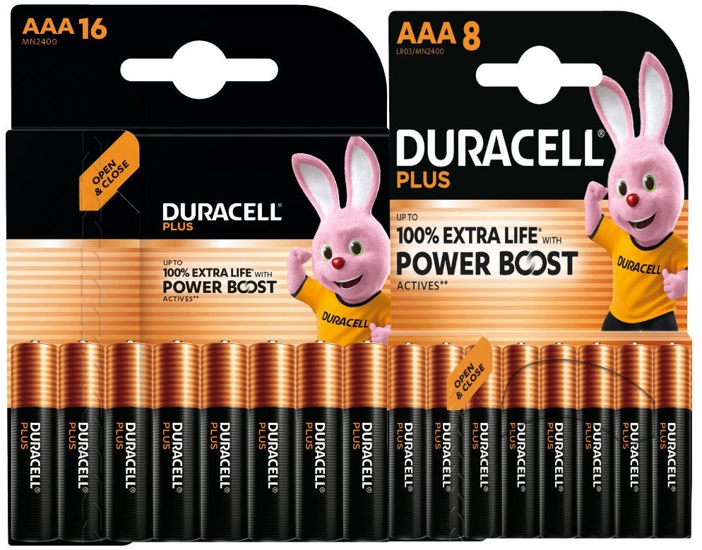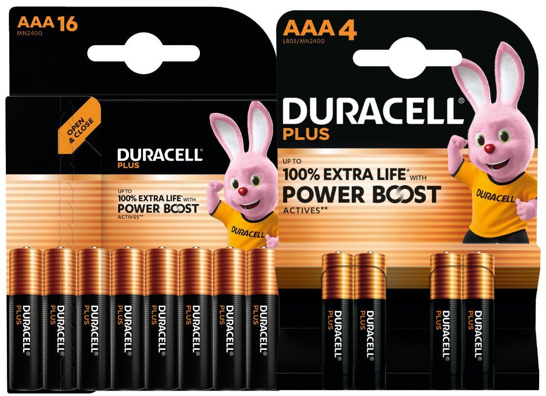 16+8 Duracell AA & AAA Plus Power Batteries with Power Boost Actives for Radios