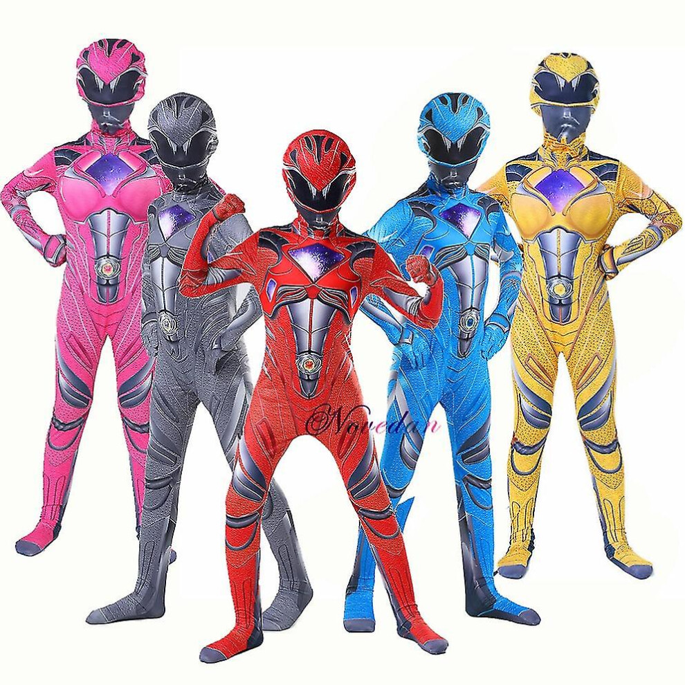(red, 130-6/7-Year) Power Rangers Cosplay Costumes for Kids Jumpsuit Fancy Dress up costume party Playsuit XL Size Pink