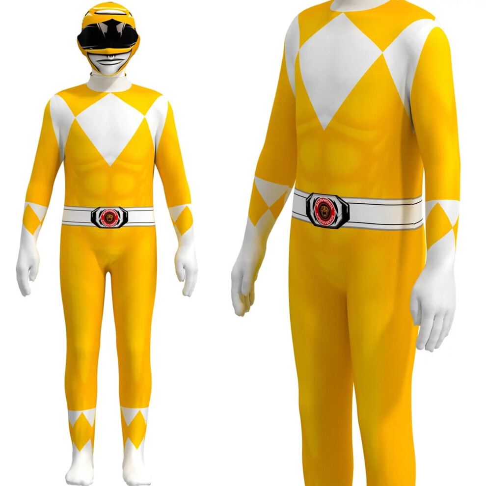 (yellow, 130-6/7-Year) Power Rangers Cosplay Costumes for Kids Jumpsuit Fancy Dress up costume party Playsuit XL Size Pink
