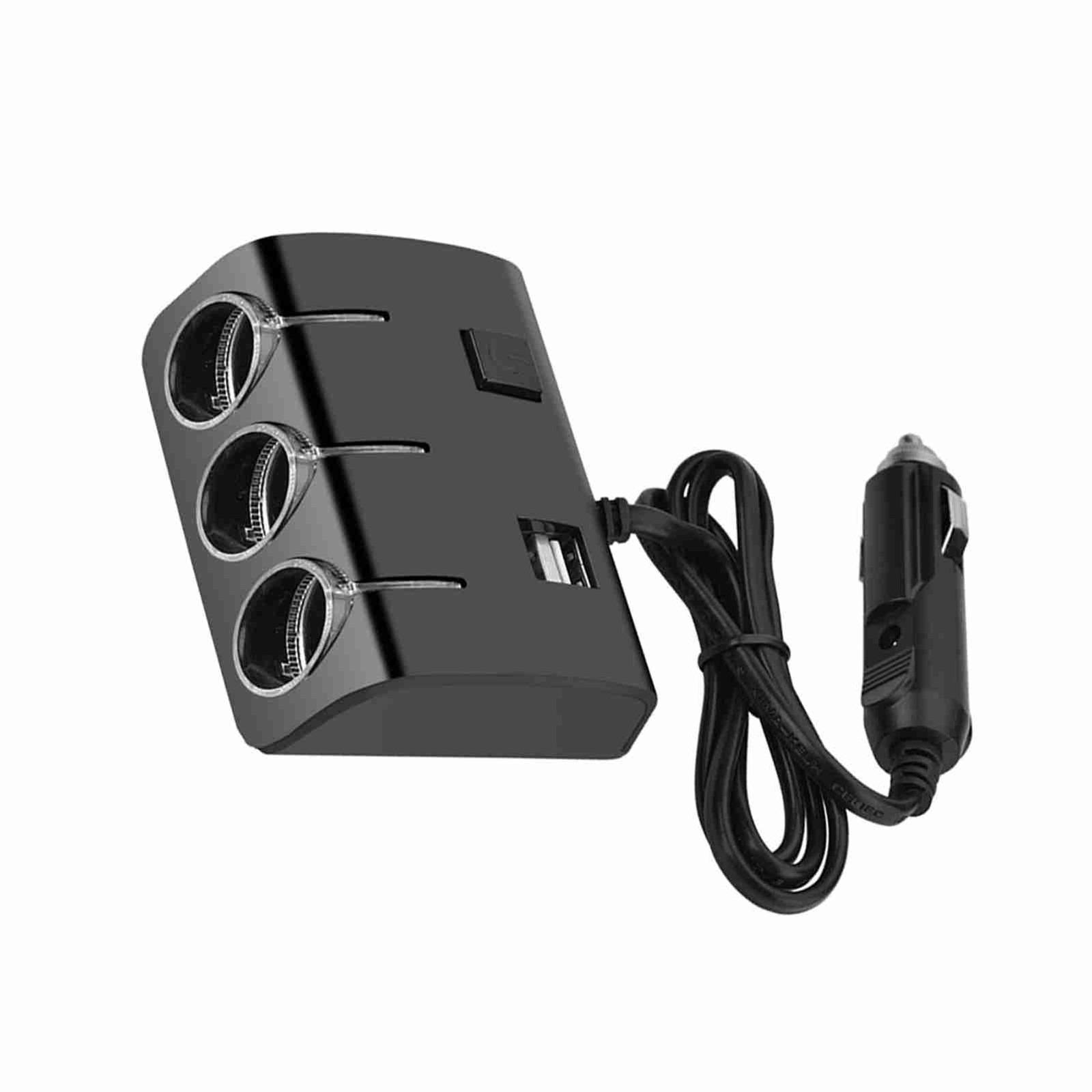 3‑Socket Car Cigarette Lighter Socket Splitter DC Power Charger Adapter With USB