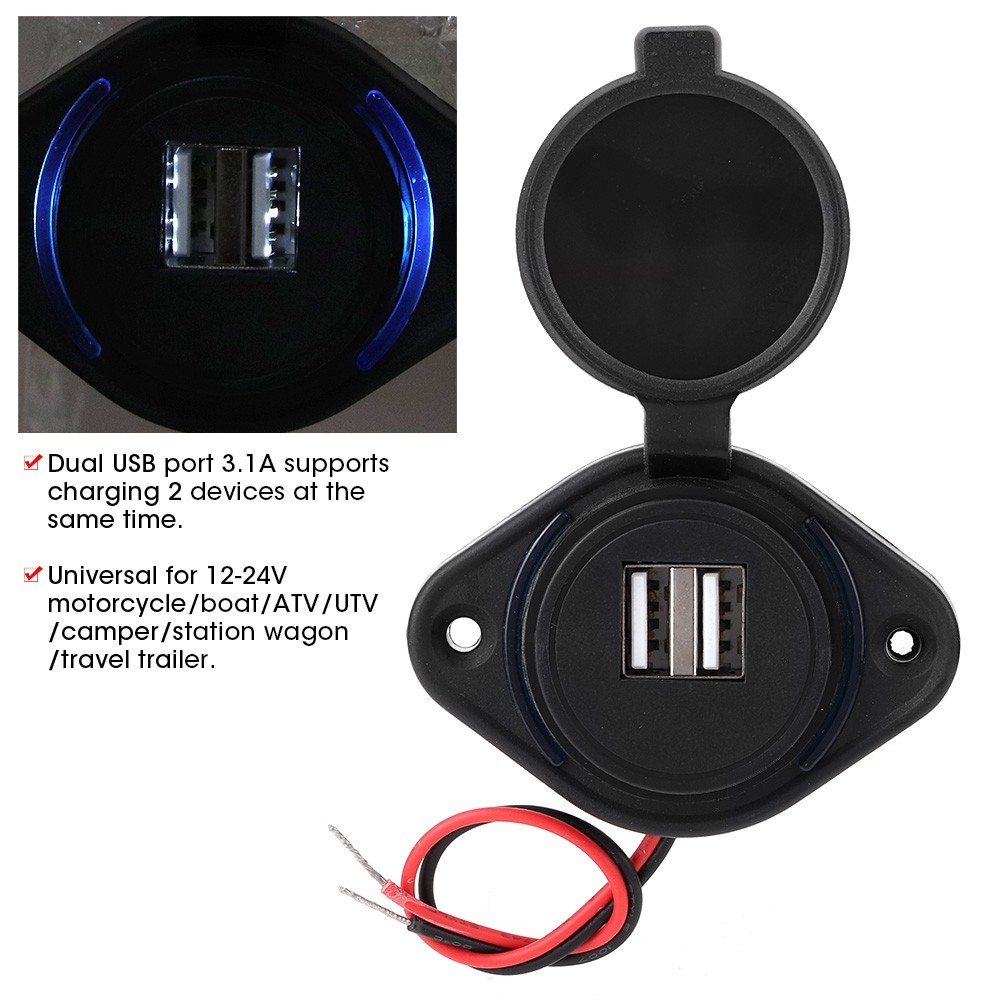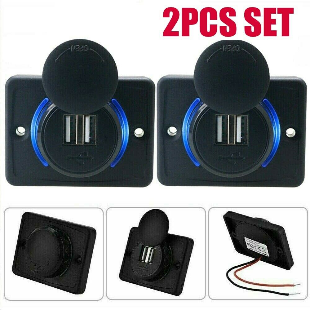 5V 3.1A 12V Dual USB Car Charger with Panel Waterproof Power Adapter Socket Outl