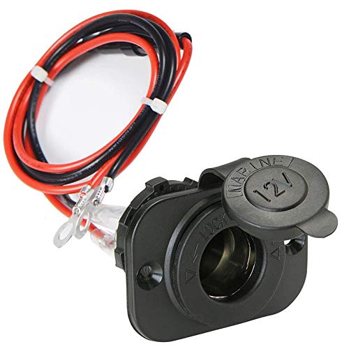 Car Cigarette Lighter Socket 12V/24V Car Plug High Power Fixe Fixed Cigarette Lighter Adapter Waterproof 13AWG Fused Extension Cable 1 M 2.5mm² Cable 20A with Eyelet Terminals for Vehicle Tractor Boat