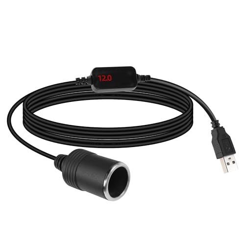 GELRHONR 5V USB A Male to 12V Car Cigarette Lighter Socket Adapter Converter with Voltmeter Display 8W, for Car Charger, GPS, Dash Cam, Socket Electronic Dog Power Supply (120cm/3.9Ft)