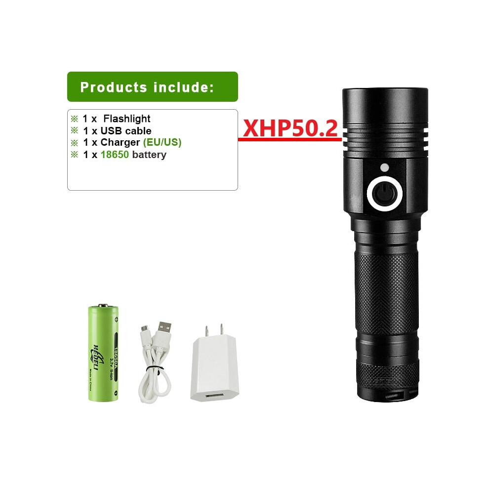(C-XHP50.2-18650) Powerful Led Flashlight XHP90 High Power Torch light Rechargeable Tactical flashlight 18650 Usb Camping Lamp