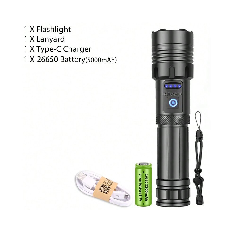 Super Bright LED Torches 15000 Lumens, High Power USB Rechargeable Torch, Tactical Flashlight with X